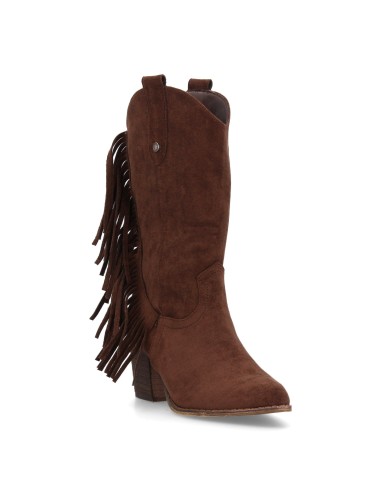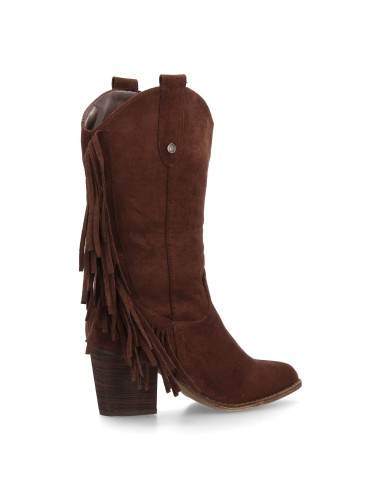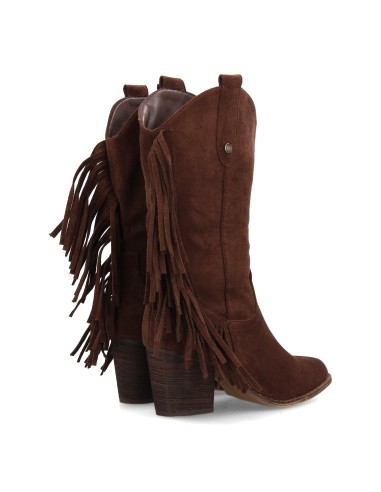 Bota de media caña cowboy con detalle de flecos laterales. Tacón ancho de altura media y tiradores. Cierre lateral con cremallera ideal temporada otoño invierno.
