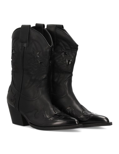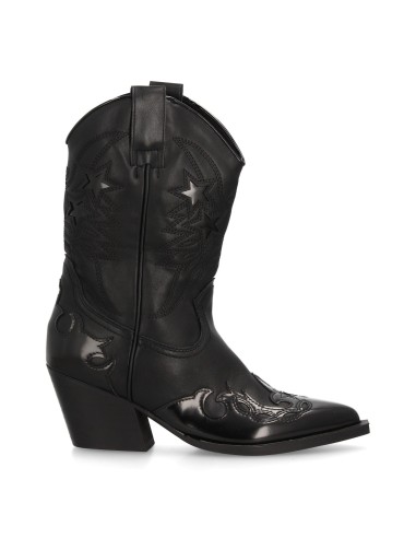 Bota de media caña cowboy con detalle de flecos laterales. Tacón ancho de altura media y tiradores. Cierre lateral con cremallera ideal temporada otoño invierno.