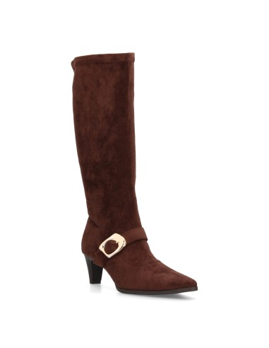 Bota alta para mujer con punta fina y tacón, estampado liso elegante. Hebilla grande decorativa. Ideal temporada otoño invierno.