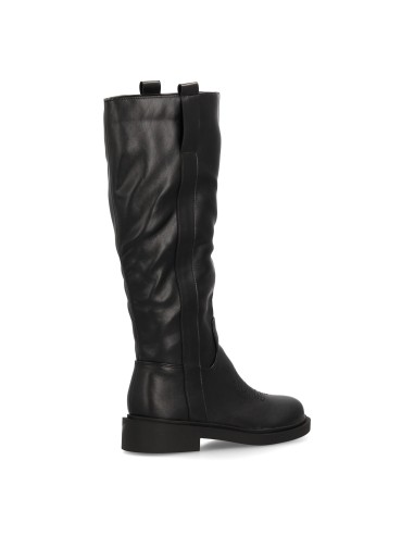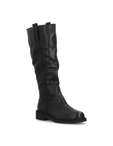 Bota alta para mujer con inspiración cowboy y detalle de bordado frontal, paneles laterales elásticos y suela plana para mayor comodidad durante todo el día. Ideal temporada otoño invierno.