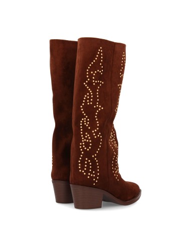 Bota alta cowboy con caña alta y tachuelas para mujer. Tacón medio y cómodo. Estilo campero, estampado liso, cierre de cremallera ideal para otoño invierno.