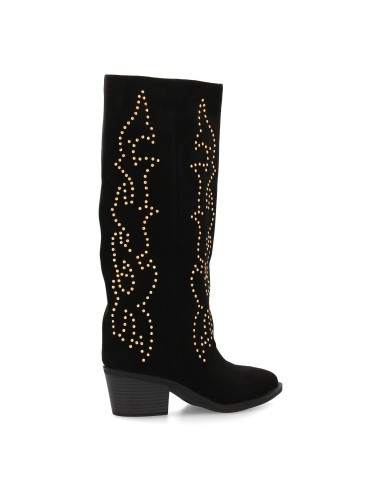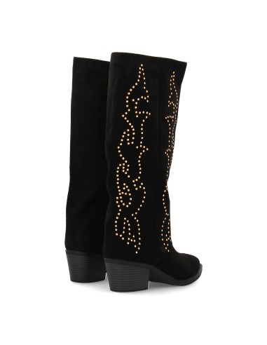Bota alta cowboy con caña alta y tachuelas para mujer. Tacón medio y cómodo. Estilo campero, estampado liso, cierre de cremallera ideal para otoño invierno.
