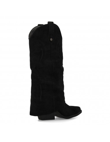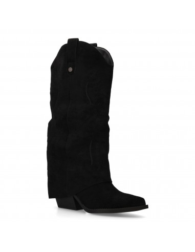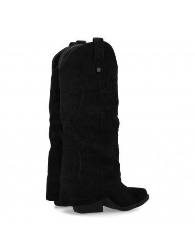 Bota para mujer estilo cowboy, acabada en punta y con grabados bordados en la caña. Tacon cubano y cierre de cremallera.