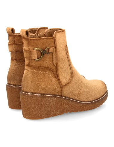 Botín para mujer con cuña cómoda para usar en el día a día. Diseño de adorno metálico lateral con estribo, cierre interior de cremallera.