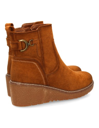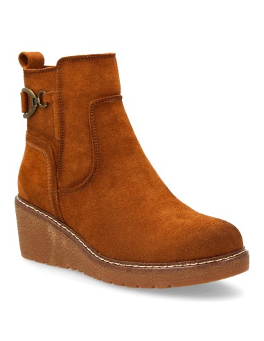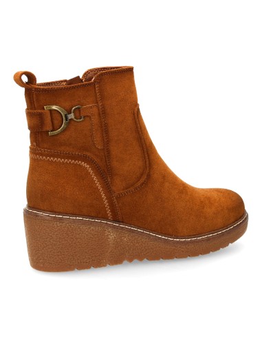 Botín para mujer con cuña cómoda para usar en el día a día. Diseño de adorno metálico lateral con estribo, cierre interior de cremallera.