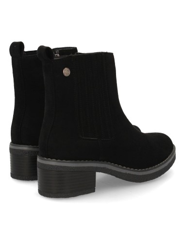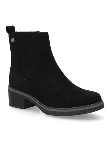 Botín para mujer con diseño tipo chelsea ideal para la temporada Otoño Invierno. Con paneles elásticos laterales que facilitan el ajuste, tacón bajo cómodo para uso diario.