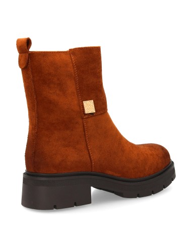 Botín moderno con estampado liso.Incorpora un adorno metálico lateral. Suela robusta con plataforma. Ideal para mujer en temporada Otoño Invierno. Cierre de cremallera