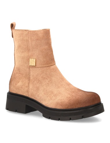Botín moderno con estampado liso.Incorpora un adorno metálico lateral. Suela robusta con plataforma. Ideal para mujer en temporada Otoño Invierno. Cierre de cremallera