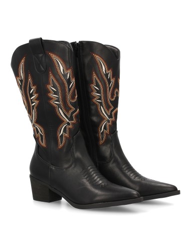 Botín cowboy mujer con bordados en la caña