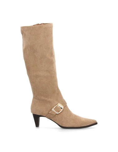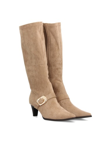 Bota alta con hebilla dorada para mujer