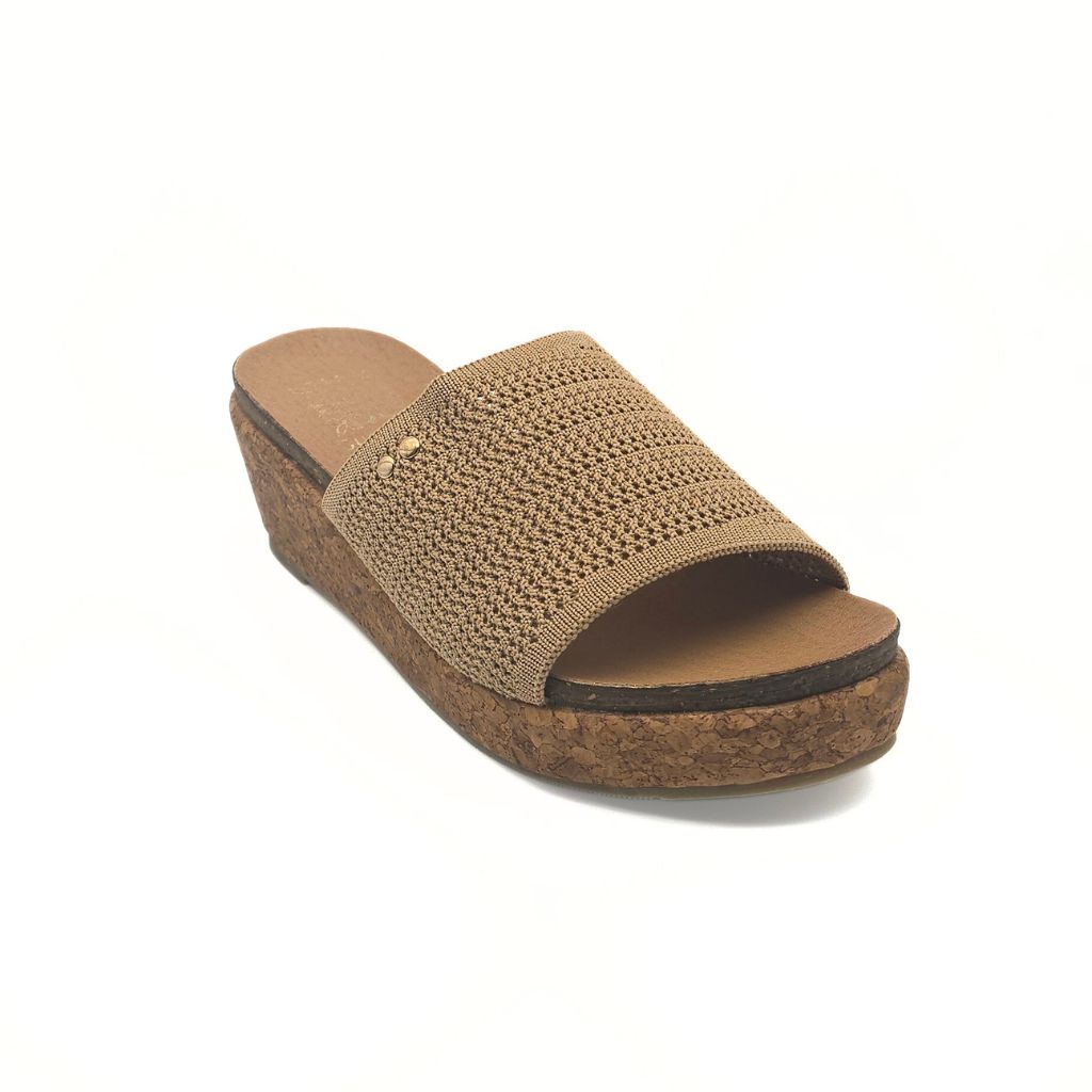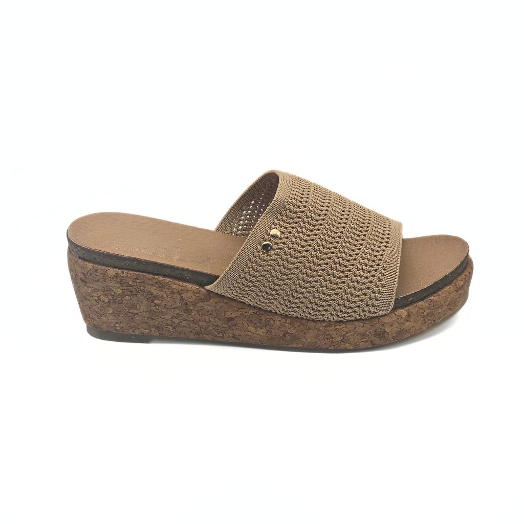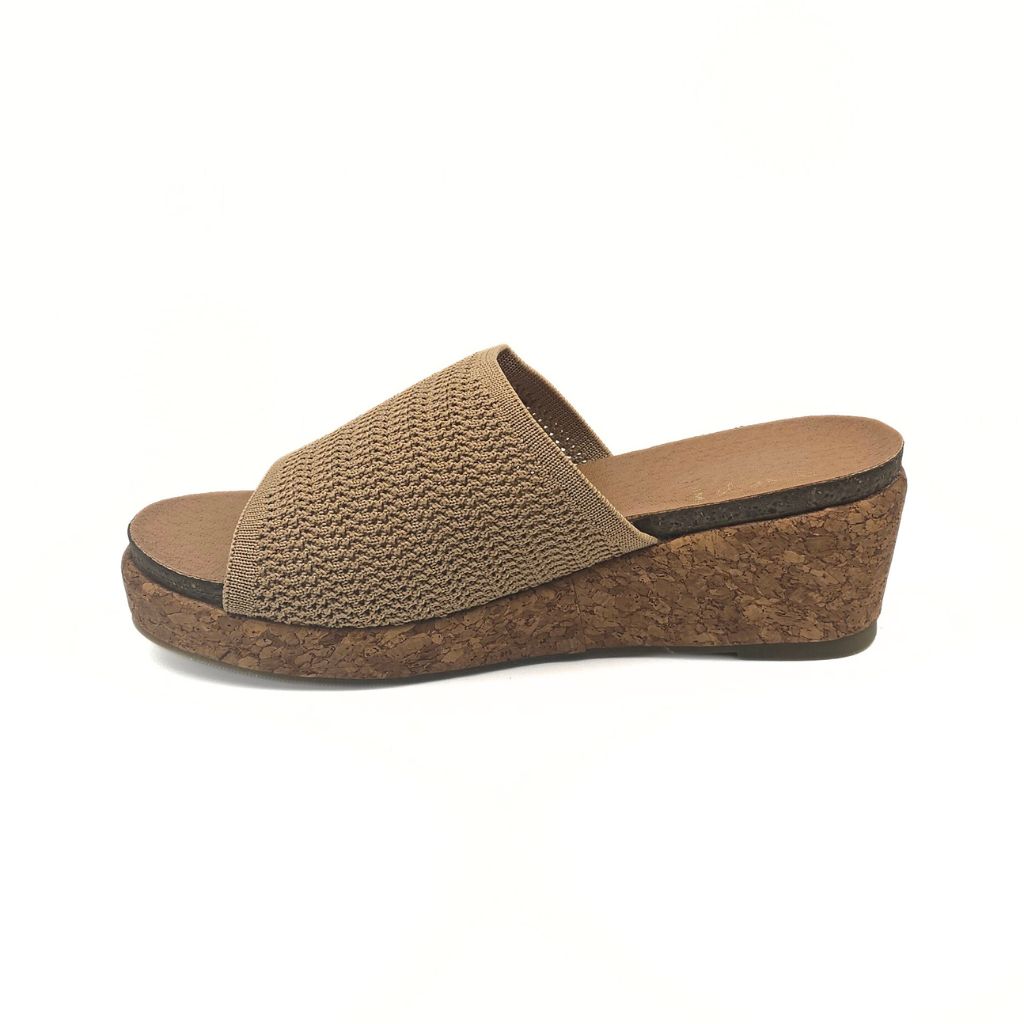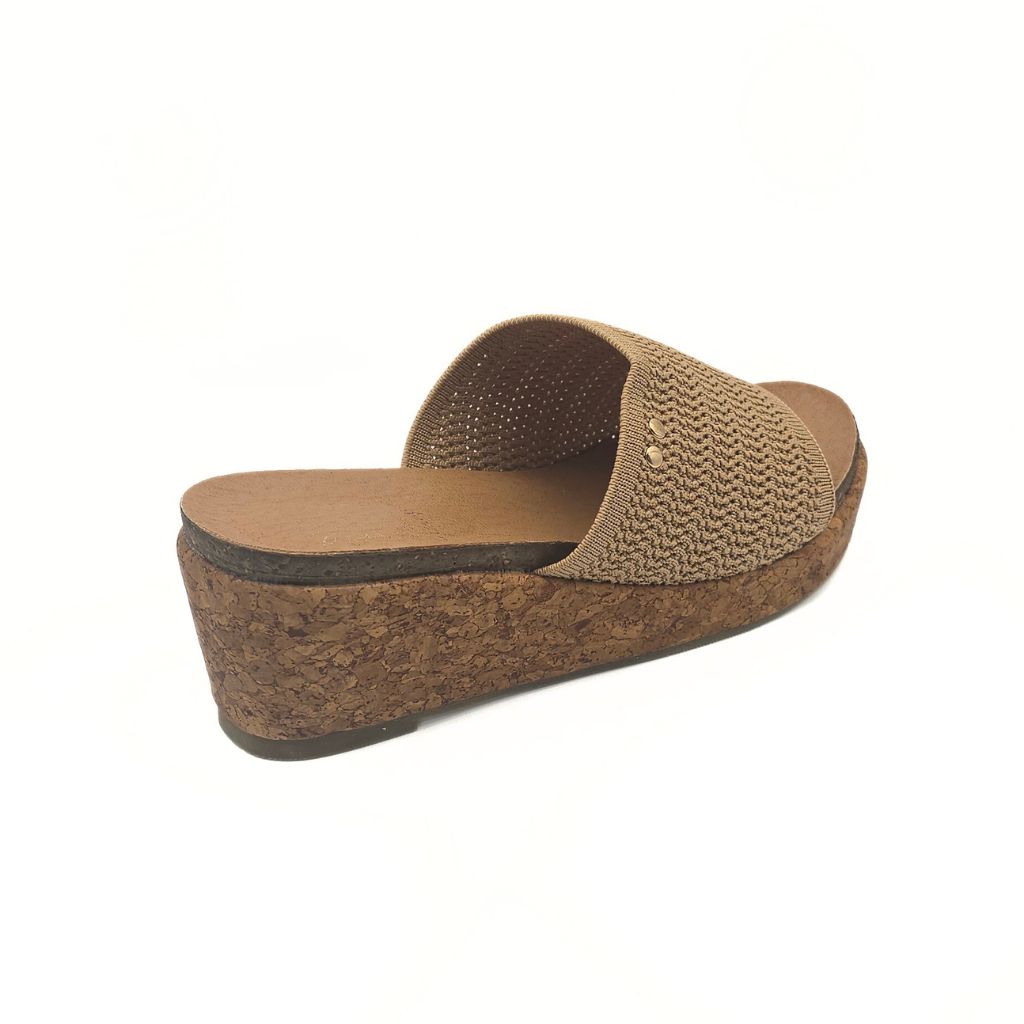 Estas cuña mules en color taupé combinan elegancia y comodidad. Su parte superior textil ofrece un ajuste suave y transpirable, mientras que la cuña con efecto corcho aporta ligereza y un estilo natural. Perfectas para quienes buscan un calzado versátil que realce cualquier look con un toque sofisticado y actual.