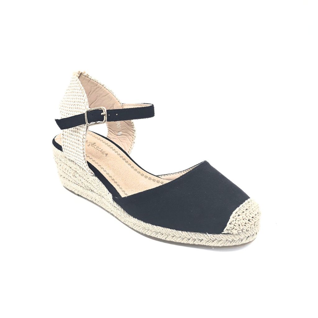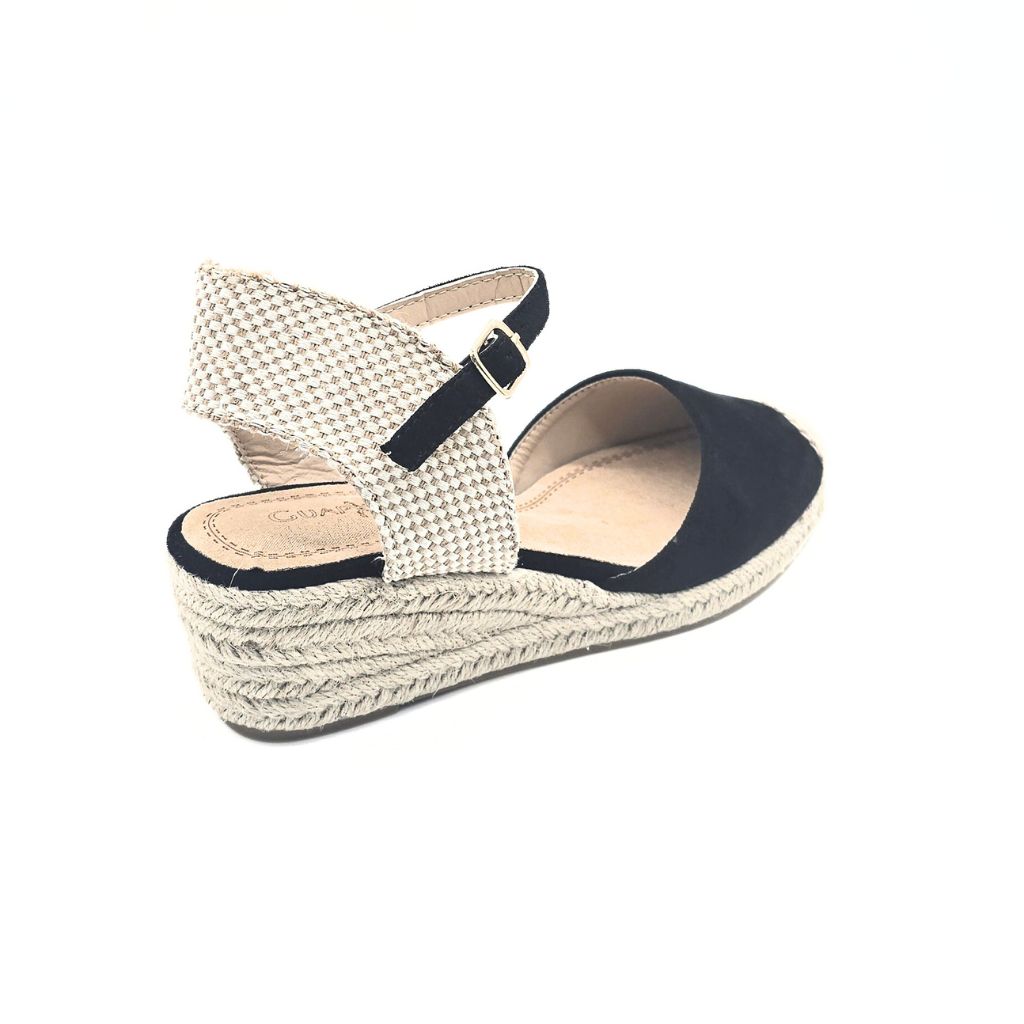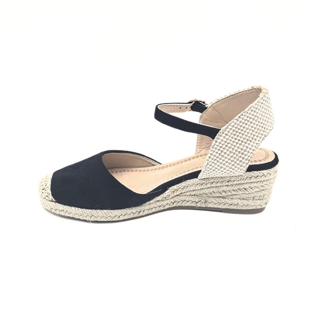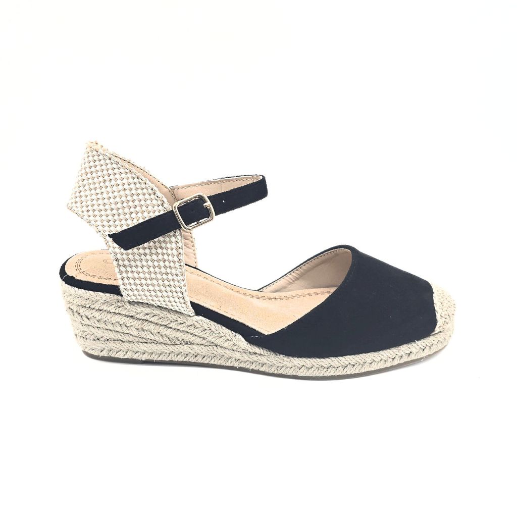 Estas cuñas de mujer en color negro combinan elegancia y comodidad con su diseño de esparto y puntera cerrada. Equipadas con un cierre de hebilla ajustable, ofrecen un ajuste seguro y personalizado. La altura de la cuña, de 5 cm en el talón y 1,5 cm en la parte delantera, proporciona un equilibrio ideal entre estilo y estabilidad, facilitando su uso durante todo el día. Perfectas para complementar tanto looks casuales como más formales, estas cuñas son una opción versátil y sofisticada para cualquier armario.