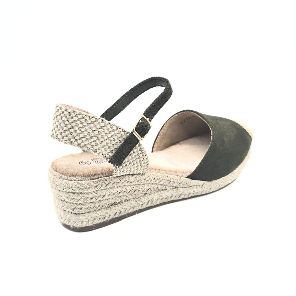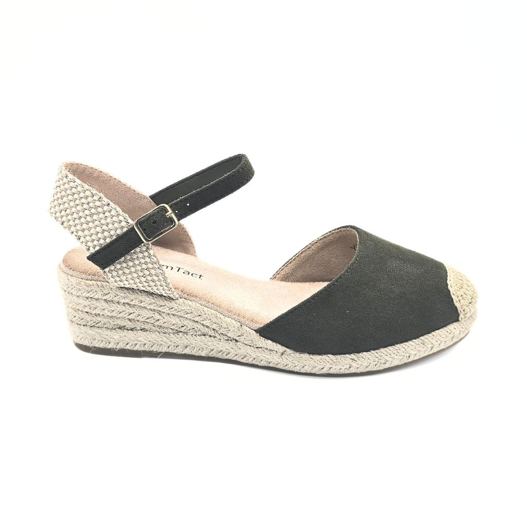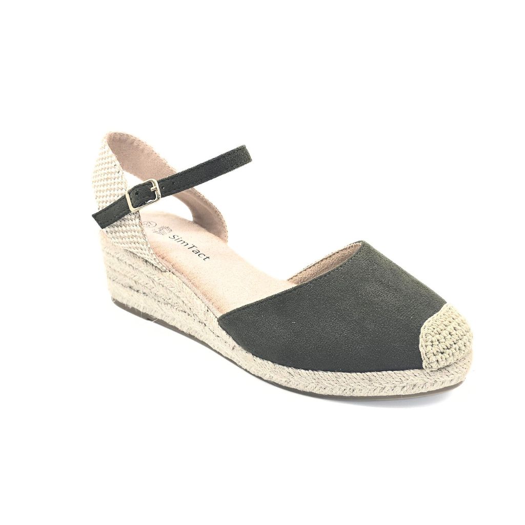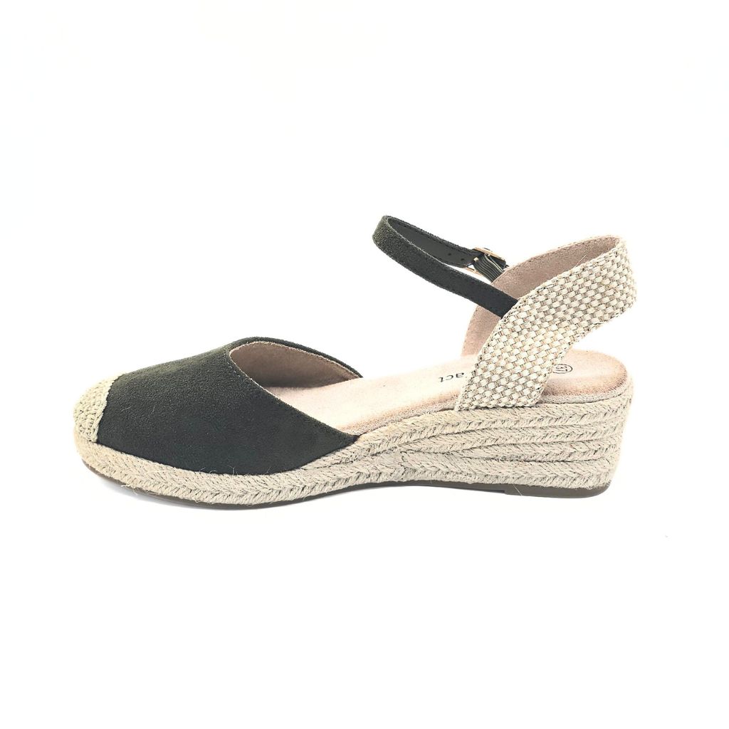 Estas cuñas de mujer en color verde oliva combinan estilo y comodidad con su diseño de esparto natural y puntera cerrada, ideal para un look sofisticado y fresco. El cierre de hebilla asegura un ajuste perfecto, mientras que la altura de 5 cm en el tacón y 2 cm en la plataforma proporciona una elevación cómoda y estable para el día a día. Perfectas para quienes buscan un calzado versátil que aporte un toque elegante sin sacrificar la comodidad.