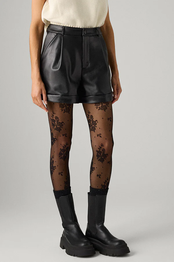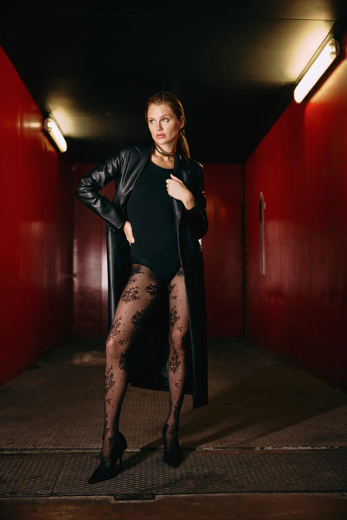 Panty 20 den estampado floral negro