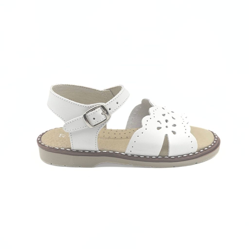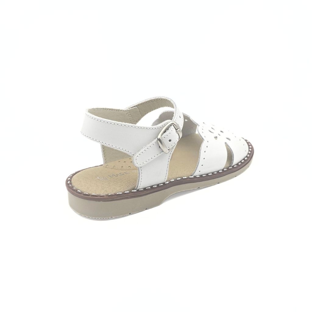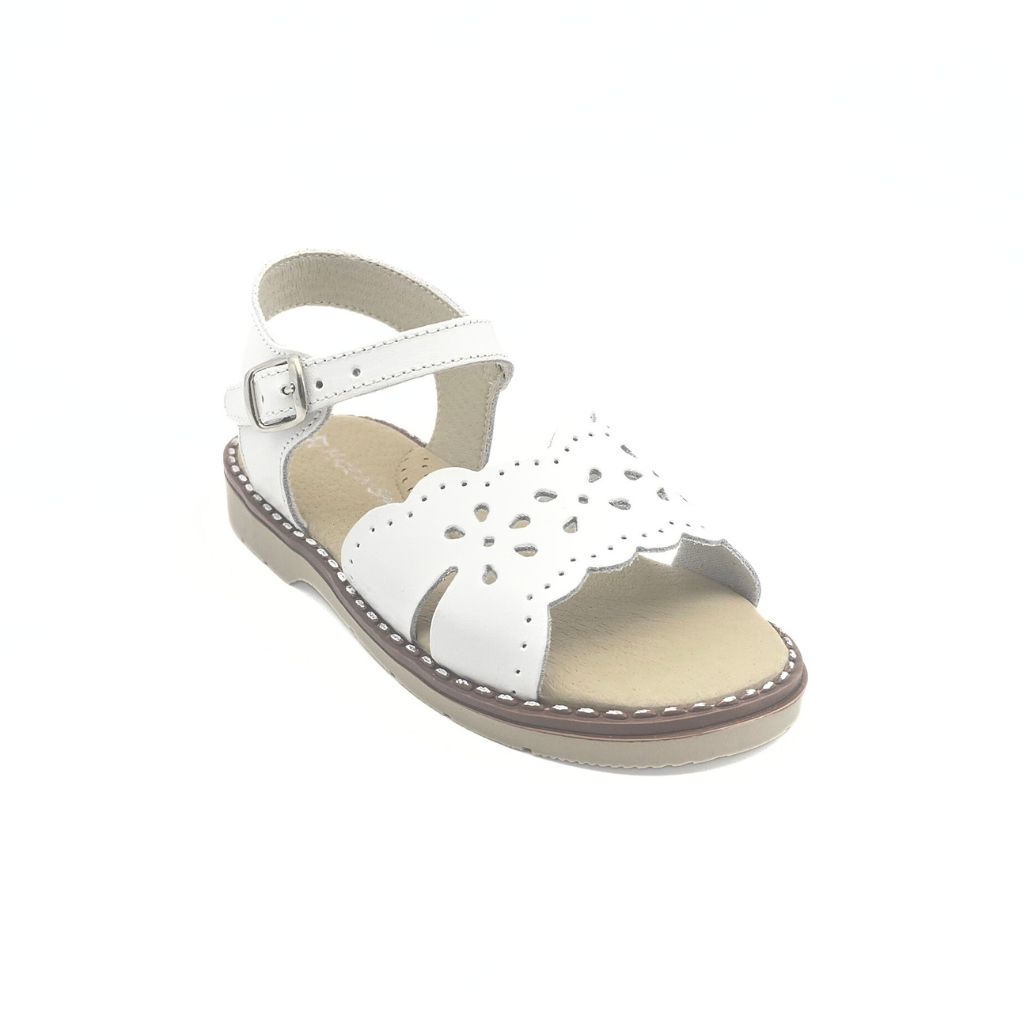 Sandalia tipo Lidia de corte clásico, elaborada en piel con un delicado picado floral que aporta elegancia y frescura. Cuenta con plantilla de piel efecto acolchado para un confort superior durante todo el día. El cierre de hebilla asegura un ajuste personalizado, mientras que el piso de goma ligero y antideslizante ofrece seguridad y estabilidad. Fabricada 100% en España, combina tradición y calidad en cada detalle.