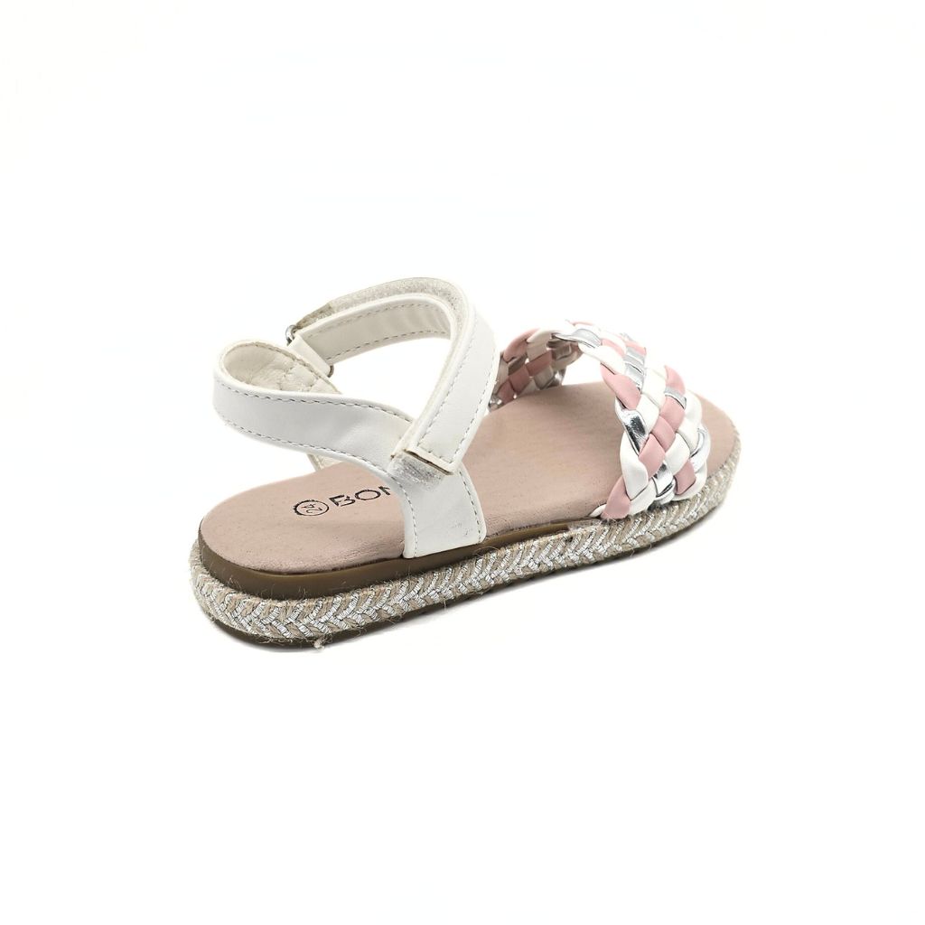 Descubre la elegancia y comodidad de nuestras sandalias trenzadas blancas para niñas. Gracias a su cierre de velcro, tus pequeñas podrán ponerlas y quitarlas fácilmente. Detalles en rosa y plata le añaden un toque de estilo. ¡Perfectas para cualquier ocasión!