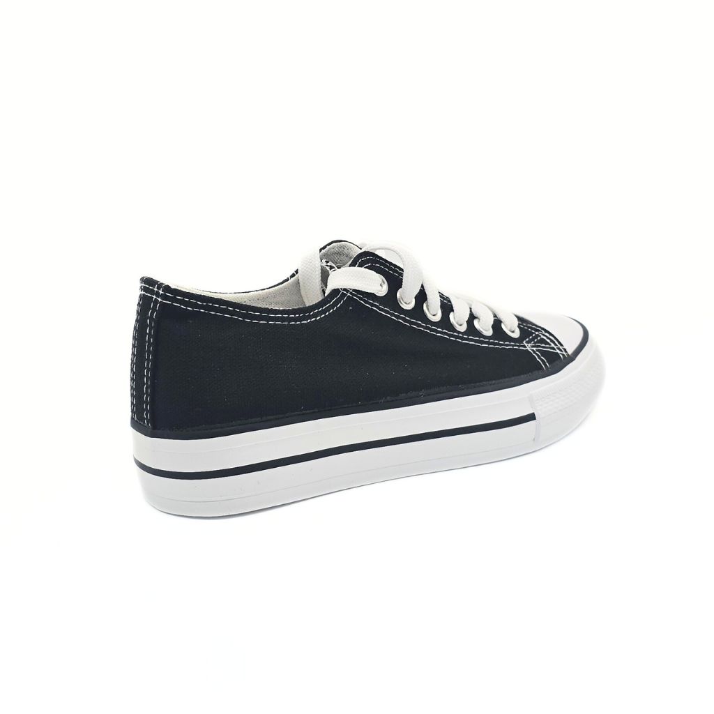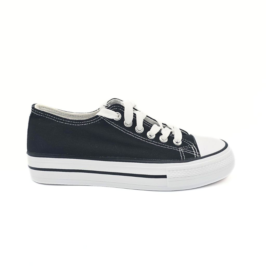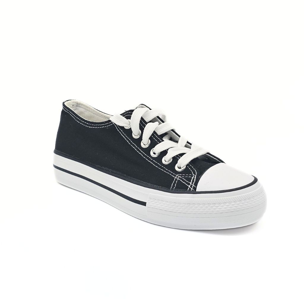 Las Zapatillas con puntera de lona en color Negro son ideales para un estilo casual y cómodo. Con una suela simple y cierre de cordones, se adaptan a cualquier actividad. Fabricadas con un material textil tipo jeans, ofrecen durabilidad y un diseño moderno. ¡La combinación perfecta de moda y funcionalidad al caminar!