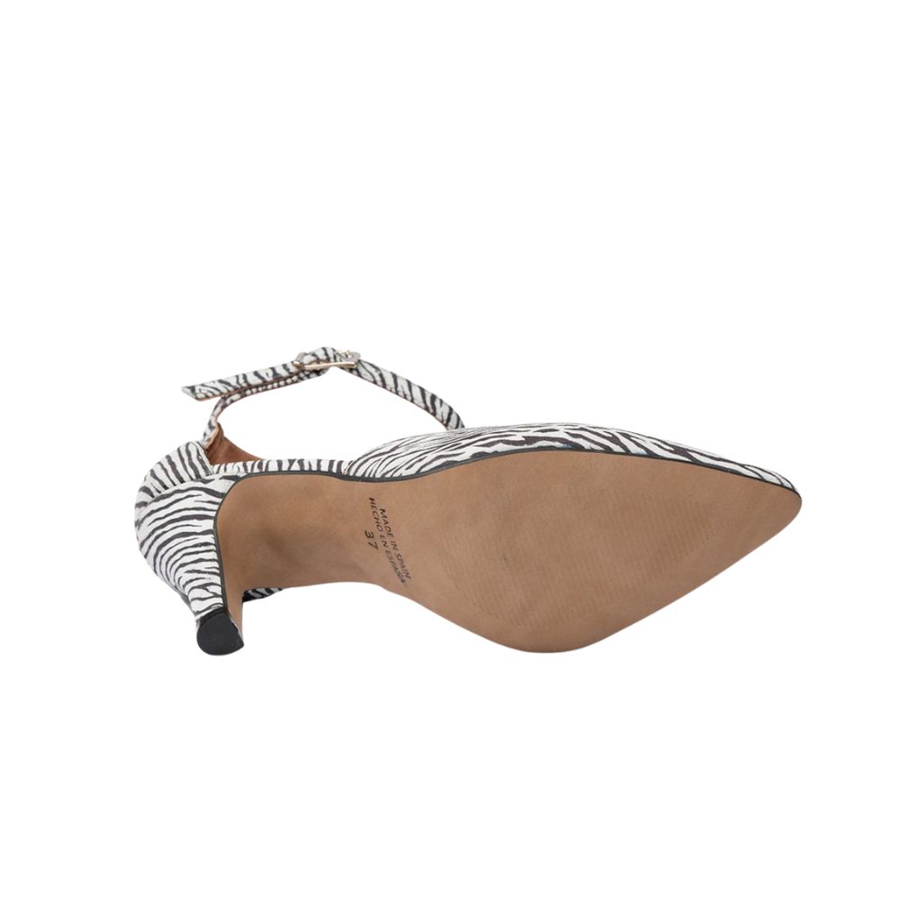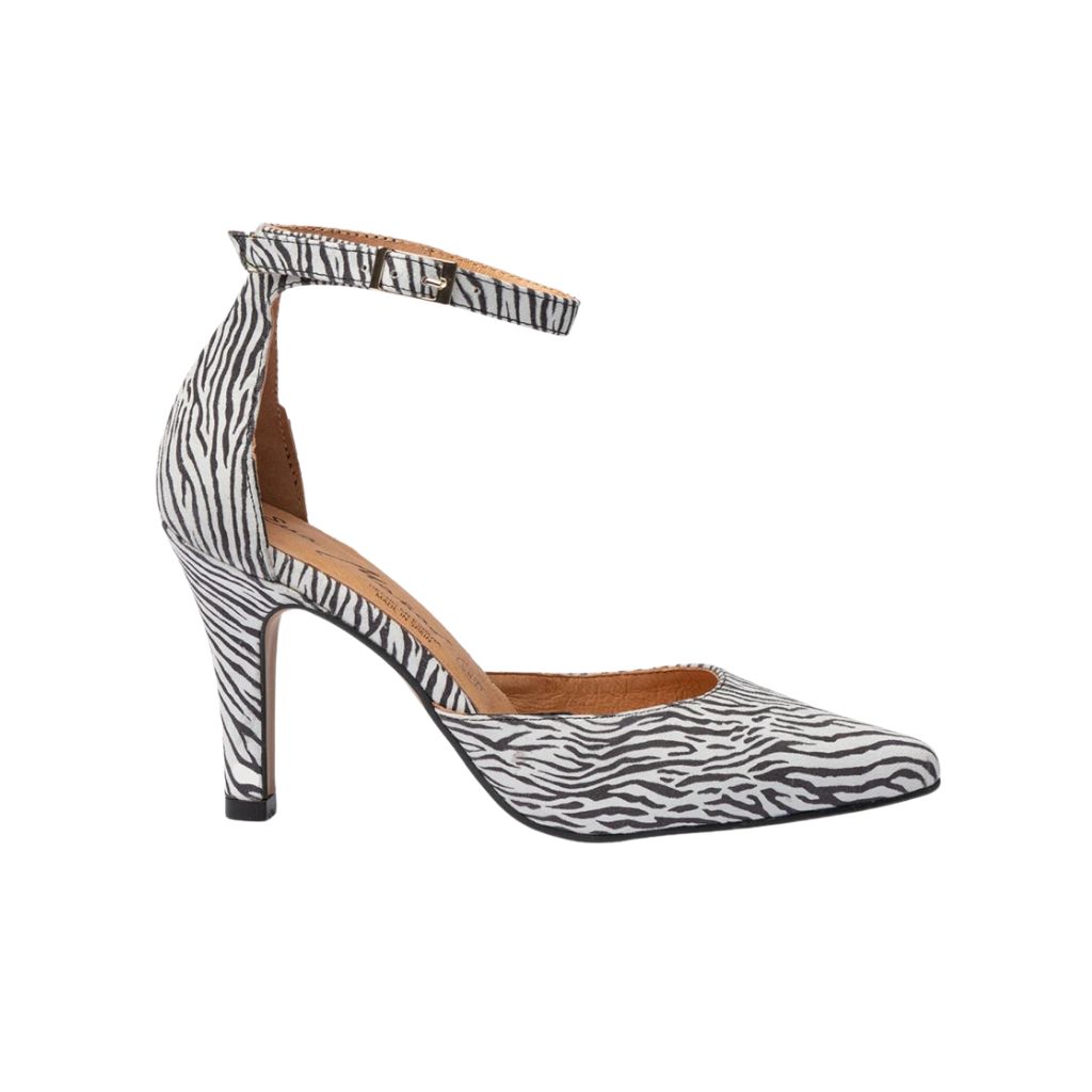 Unos salones suaves, flexibles y cómodos. Zapato tipo salón fabricado en ante afelpado con estampado tipo cebra de piel bovina. La parte interior está fabricada con piel natural, planta interior transpirable con gel-látex y memory foam. Protector de punteras-talones y suela de cuerolite antideslizante con tacón de 8,5 cm de altura. Calzado diseñado y fabricado en España.